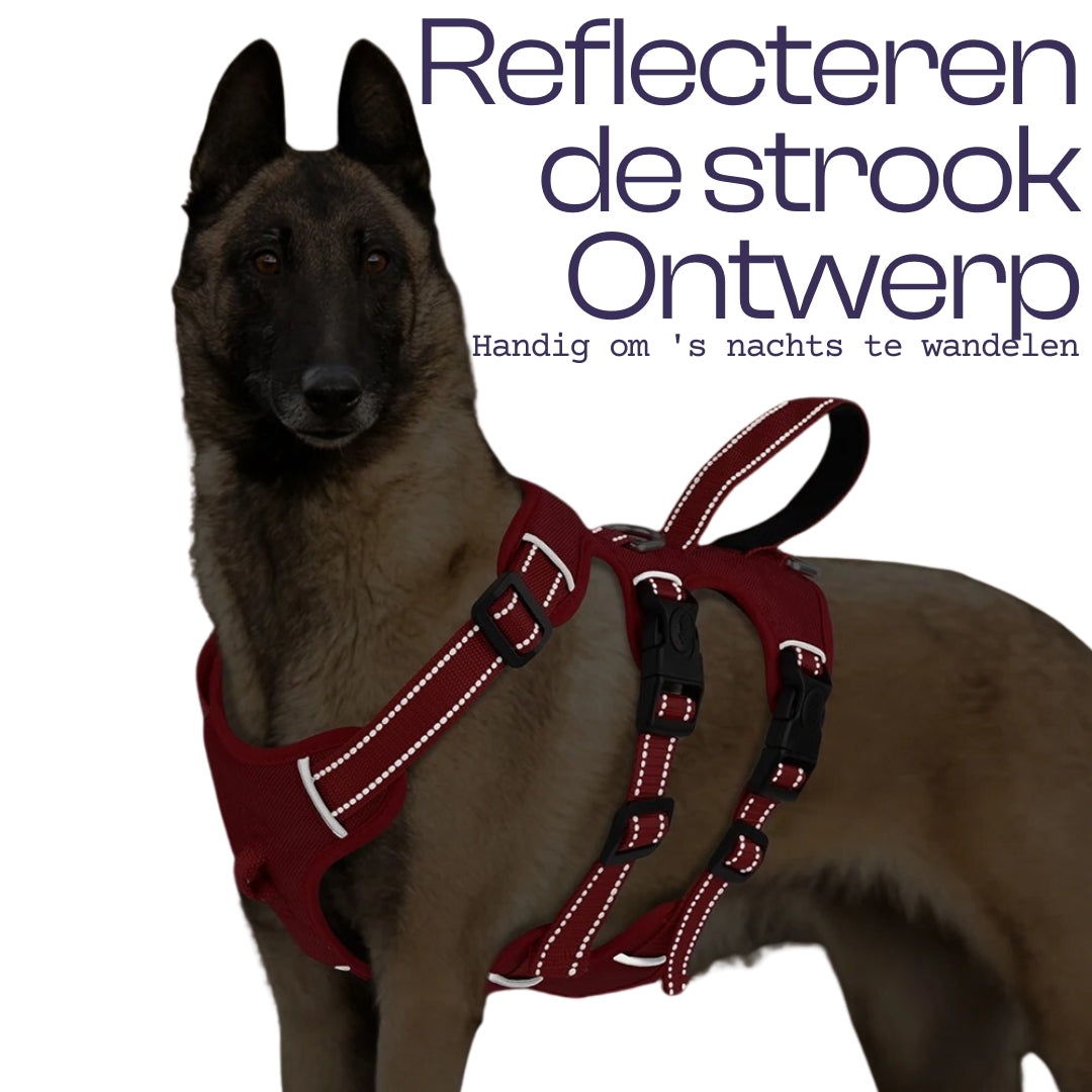 Le harnais ultime pour les chiens forts comme les pitbulls avec 3 points de fixation et des détails réfléchissants